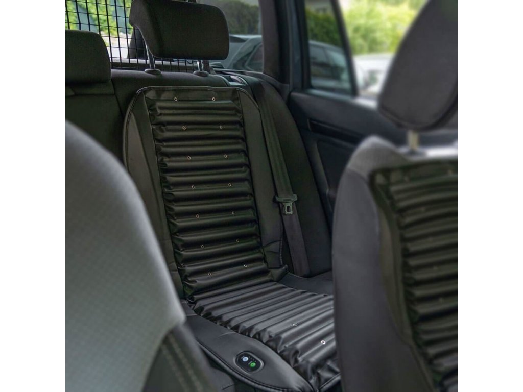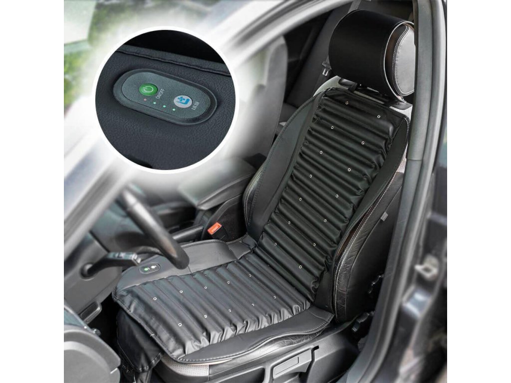 Unicitatea acestei huse de răcire constă în sistemul revoluționar care funcționează pe principiul răcirii active. Cu ajutorul unui ventilator, acesta aspiră aer, pe care apoi îl suflă în deschiderile capacului. Astfel, se disipează căldura sau se răcește scaunul.