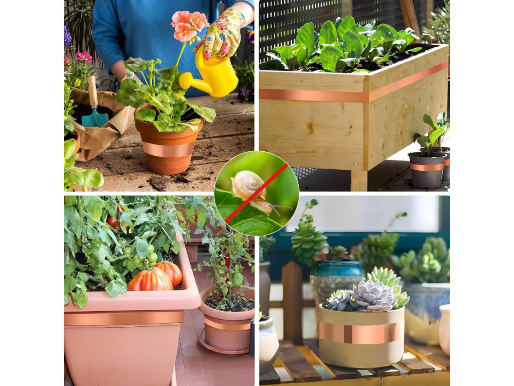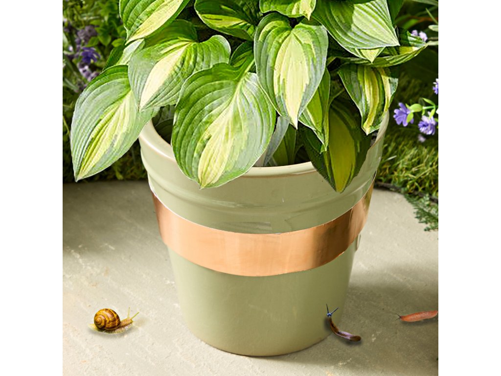 Faceți cunoștință cu banda de cupru, care poate îndeplini nu doar o funcție de protecție, ci și una estetică . Suprafața de cupru arată elegant și se poate potrivi de minune cu decorațiunile din grădina dvs. Nici măcar nu trebuie să interfereze cu aspectul ghivecelor de flori sau al altor recipiente pe care o lipiți.