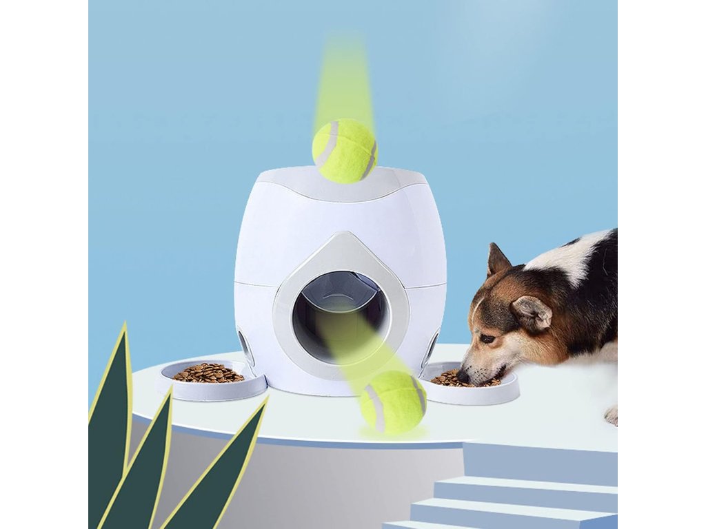 Ai un câine activ căruia îi place să aducă mingea, dar nu ai întotdeauna timp să-i arunci o minge? Avem o soluție unică pentru tine și câinele tău - un aruncător de mingi interactiv cu dozator de hrană .