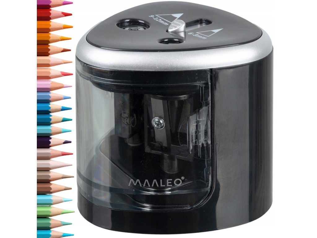 Ascuțitoarea electrică excepțională cu orificiu dublu facilitează viața tuturor utilizatorilor care lucrează cu diferite tipuri de creioane . Un orificiu este conceput pentru creioane cu diametrul de 6-8 mm, iar celălalt pentru creioane mai groase de 9-12 mm.