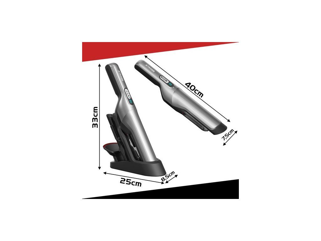 Aspiratorul are o putere unică de 100 W , ceea ce reprezintă o putere cu adevărat enormă pentru un dispozitiv atât de mic. Aceasta este asigurată de o baterie încorporată de înaltă calitate, de 2000 mAh , suficientă pentru a curăța întreaga mașină. După ce se descarcă, îl puteți încărca convenabil în stația de încărcare.