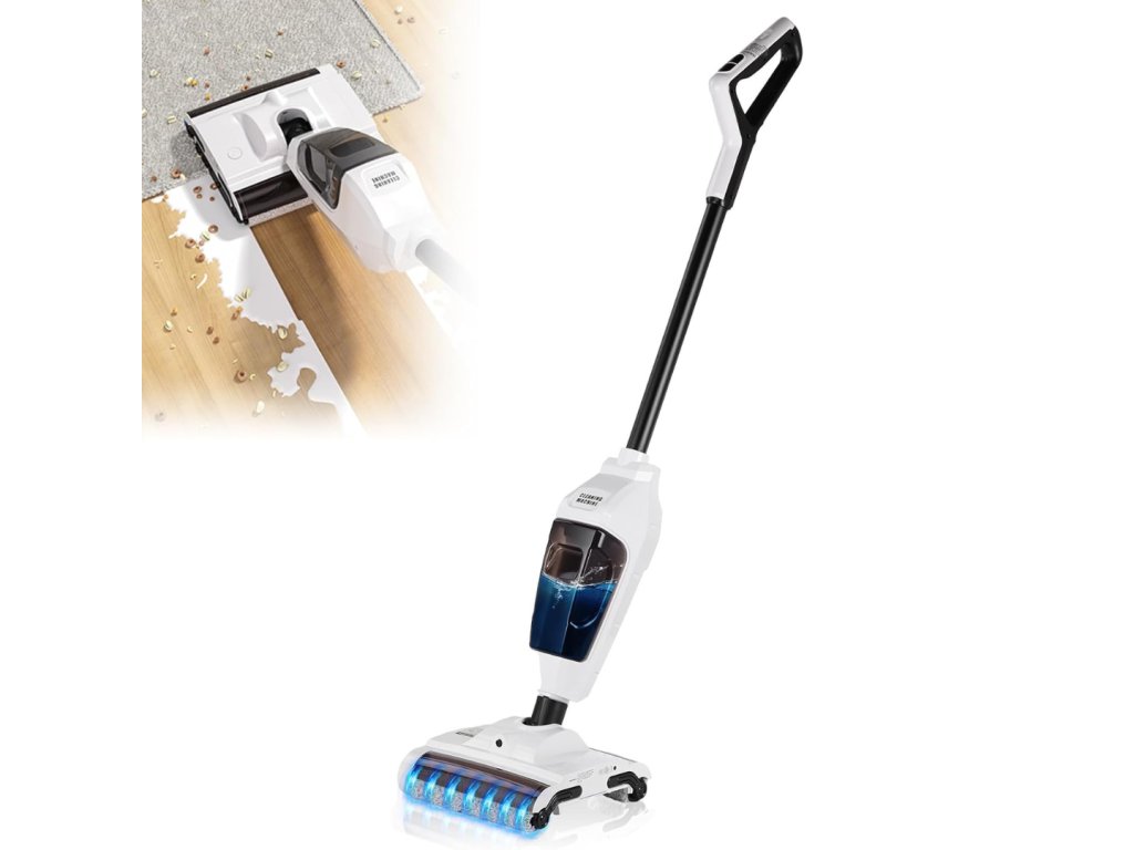 Aspiratorul vertical fără fir cu mop combină aspirarea, spălarea, dar și măturatul. Este echipat cu două role care pot colecta toată murdăria cu care intră în contact. În plus, una este amplasată în față, iar cealaltă în spate. Acest lucru face curățarea podelelor mai eficientă și mai rapidă.
