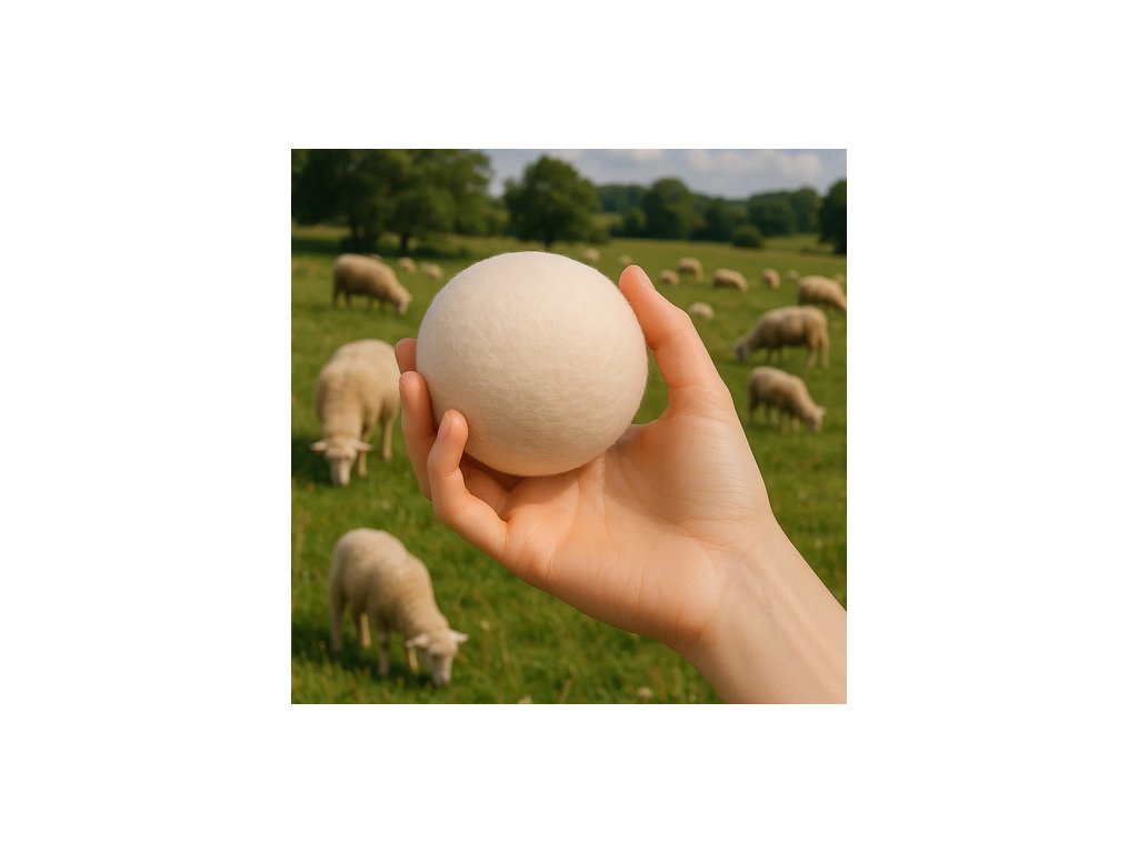Fiecare ghem este fabricat din 100% lână de oaie. Lâna înmoaie în mod natural hainele și elimină electricitatea statică, fără substanțe chimice sau iritații. În plus, nu va zgâria tamburul și nu va deteriora țesăturile, nici măcar pe materialele delicate.