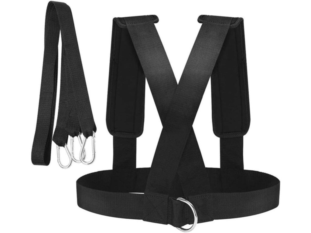 Centura de antrenament de rezistență este fabricată dintr-un material rezistent, care poate suporta încărcături chiar mai mari. Acest lucru este valabil și pentru carabinierele metalice care asigură o fixare sigură. Cu toate acestea, hamul nu este doar durabil, ci și confortabil. Curelele reglabile și întăriturile pentru umeri asigură confort.