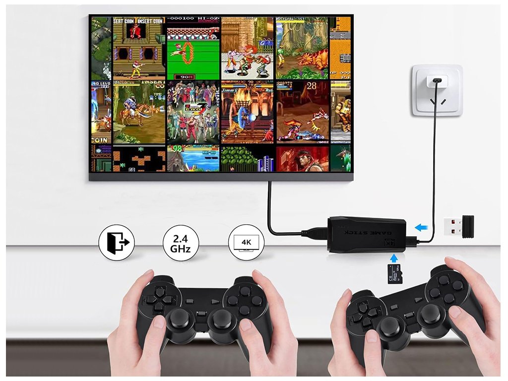 Uită de instalările complicate sau de descărcările lungi de date. Consola de jocuri Retro TV funcționează în modul Plug & Play, ceea ce înseamnă că trebuie doar să o conectezi la televizor prin HDMI și ești gata de joc. Toate jocurile sunt preinstalate, așa că distracția începe imediat după pornire.