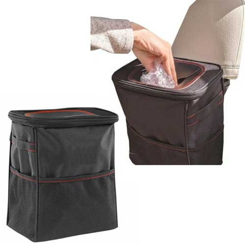 Multifuncționalitatea nu este sfârșitul poveștii. Pe lângă faptul că servește drept coș de gunoi sau cutie de depozitare a alimentelor, o veți aprecia și ca un excelent organizator pentru mașină. Cele 3 buzunare din jurul perimetrului său pot încăpea confortabil tot ceea ce trebuie să țineți la îndemână.