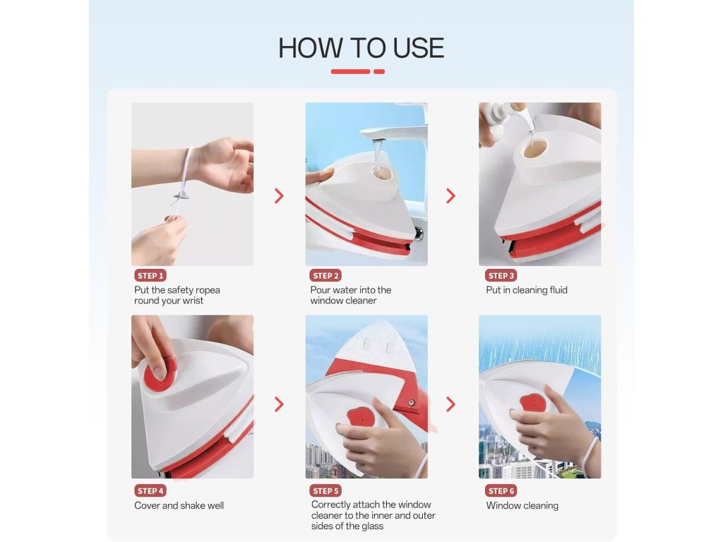 Utilizarea soluției magnetice de curățat geamuri cu două fețe este foarte ușoară.