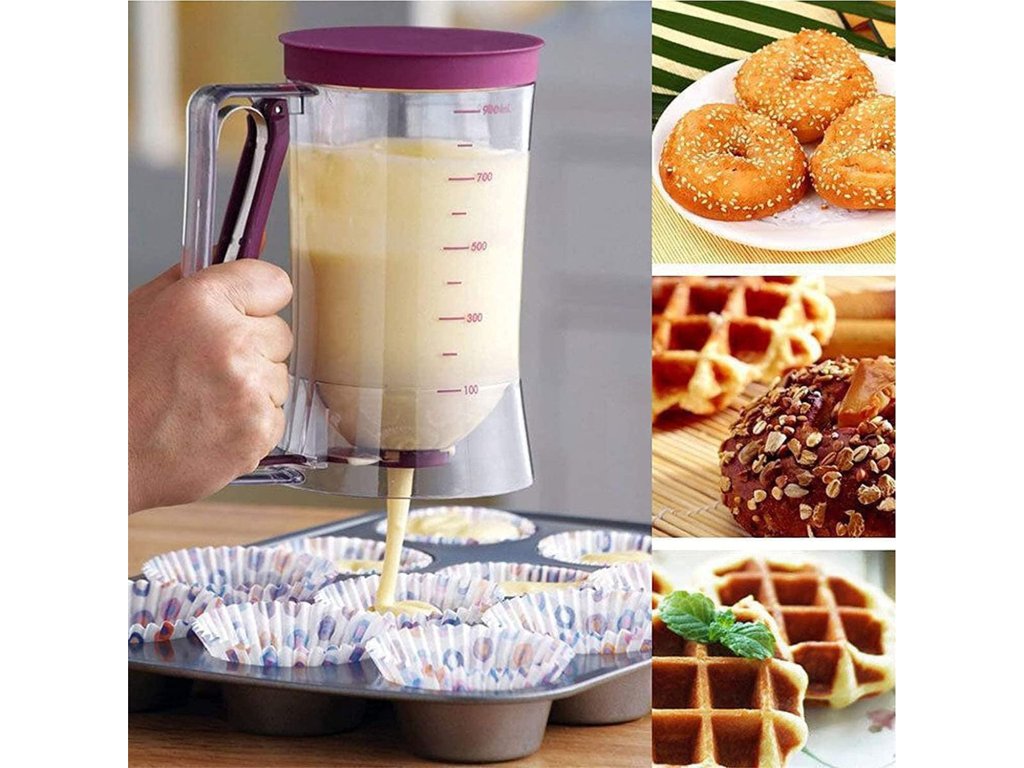 Uită de scurgerile și resturile de pe blatul de bucătărie. Acest dozator special de aluat îți permite să torni amestecul exact unde dorești - fără risipă inutilă. Funcționează curat, precis și eficient, economisind nu doar ingrediente, ci și timpul necesar curățării după gătire.