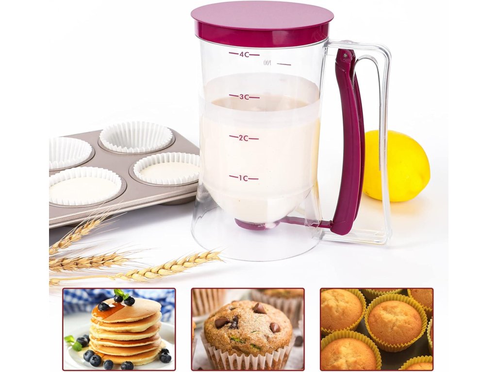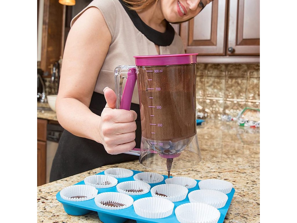 Dozatorul practic de aluat este ideal nu doar pentru clătite de micul dejun sau clătite de duminică. Utilizarea sa se extinde mult mai departe - funcționează perfect și la prepararea brioșelor, cupcake-urilor, aluatului de prăjituri sau a altor rețete lichide.