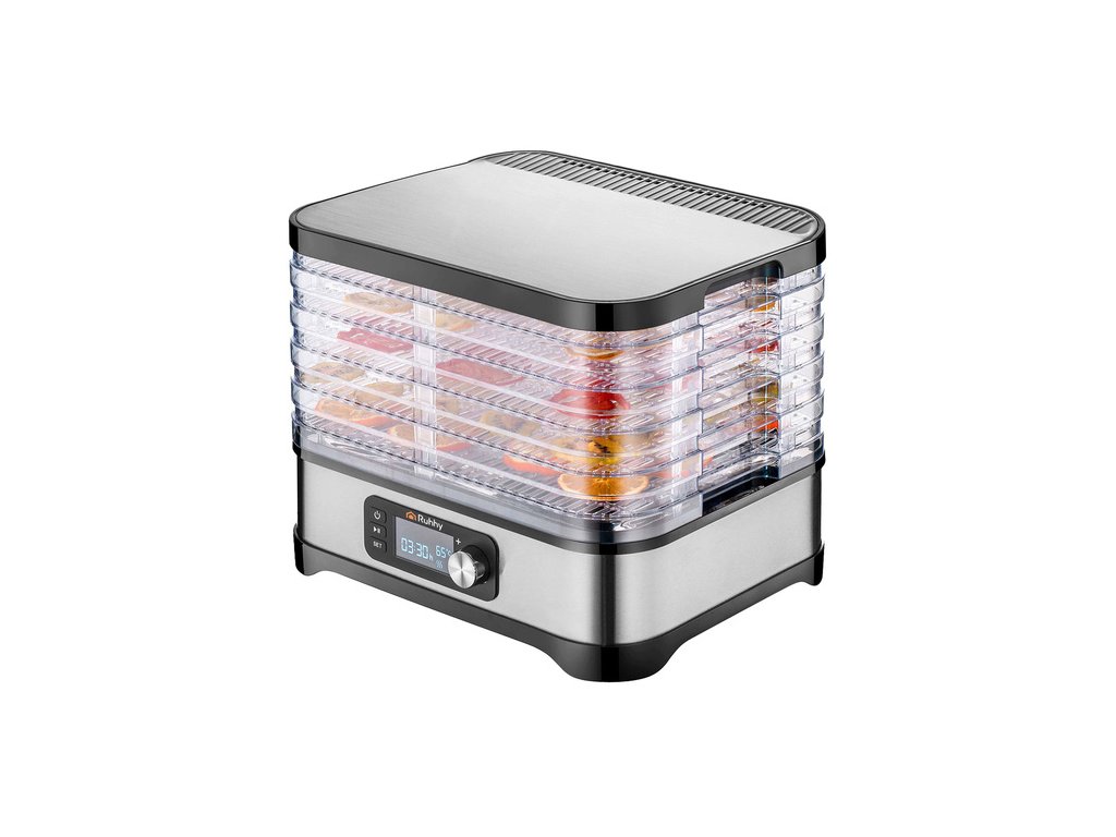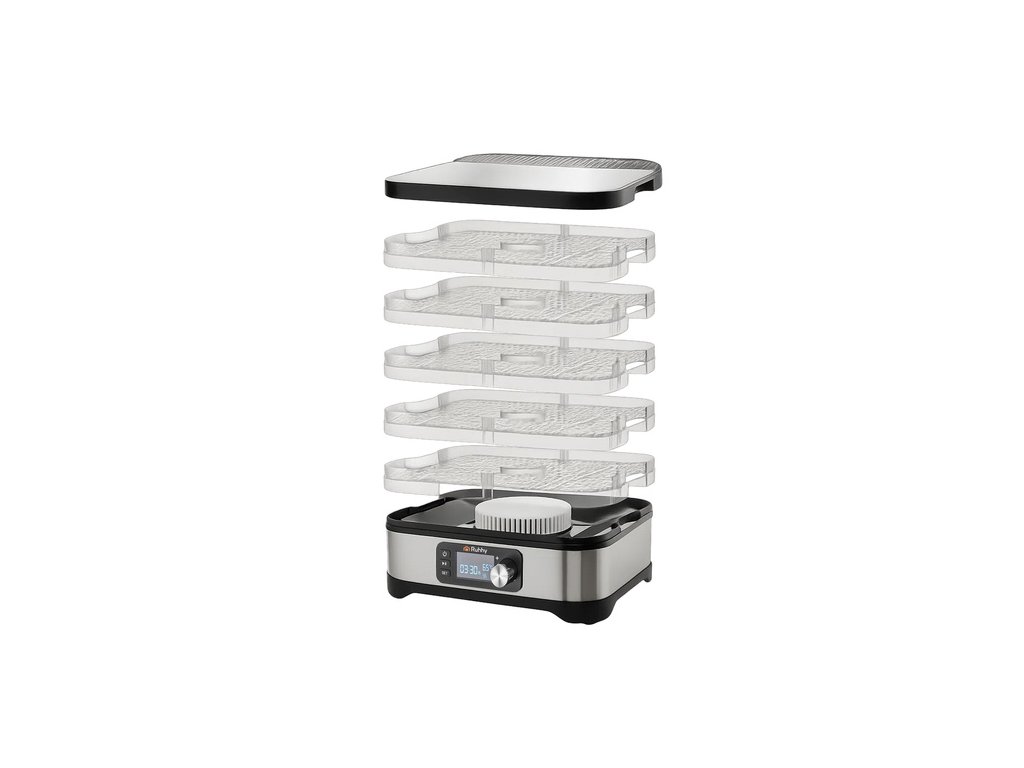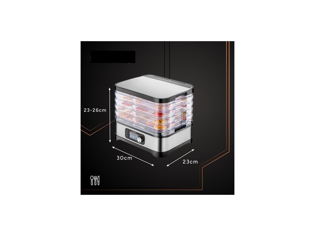 Acest uscător de fructe și ciuperci uimitor are un cronometru încorporat care vă permite să programați timpul de lucru de la 1 la 72 de ore cu ajutorul butoanelor de pe afișajul LCD.