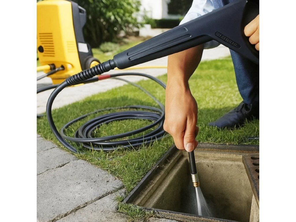 Un furtun de curățare a țevilor nu este un furtun obișnuit. Este echipat cu o duză specială care direcționează jetul de apă exact acolo unde aveți nevoie. În acest fel, poate sparge depunerile din țevi pe care nici măcar substanțele chimice nu le pot gestiona.