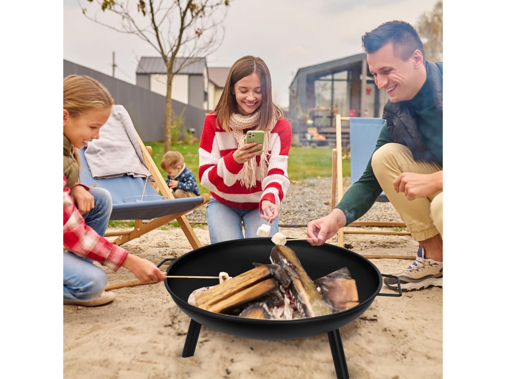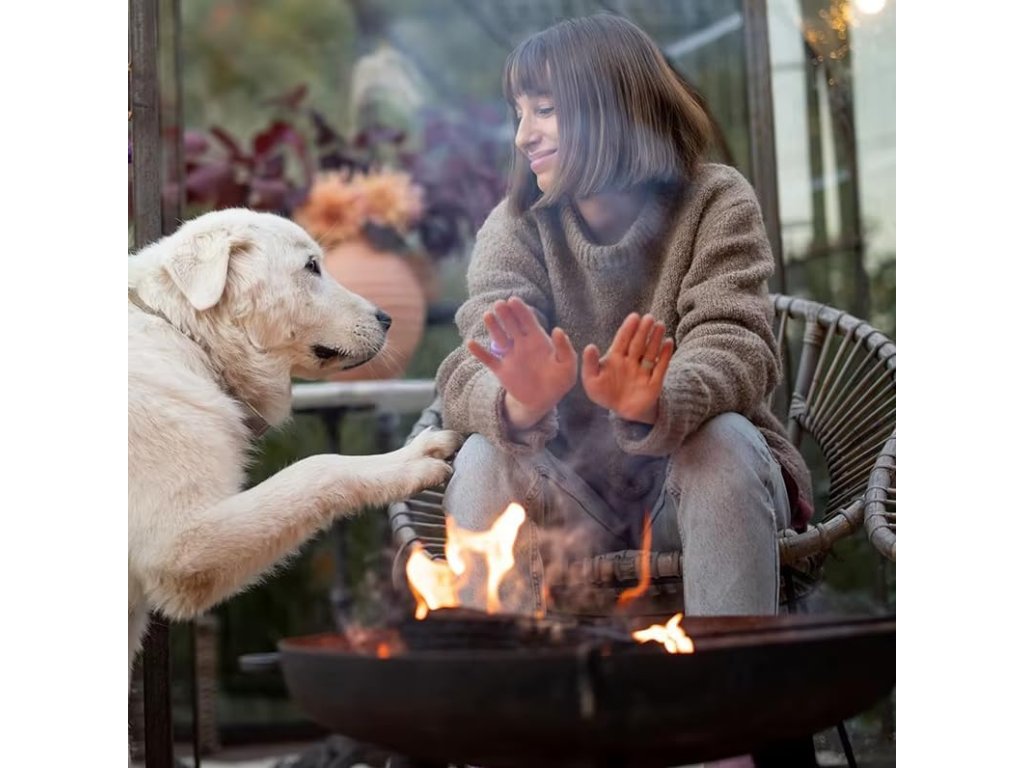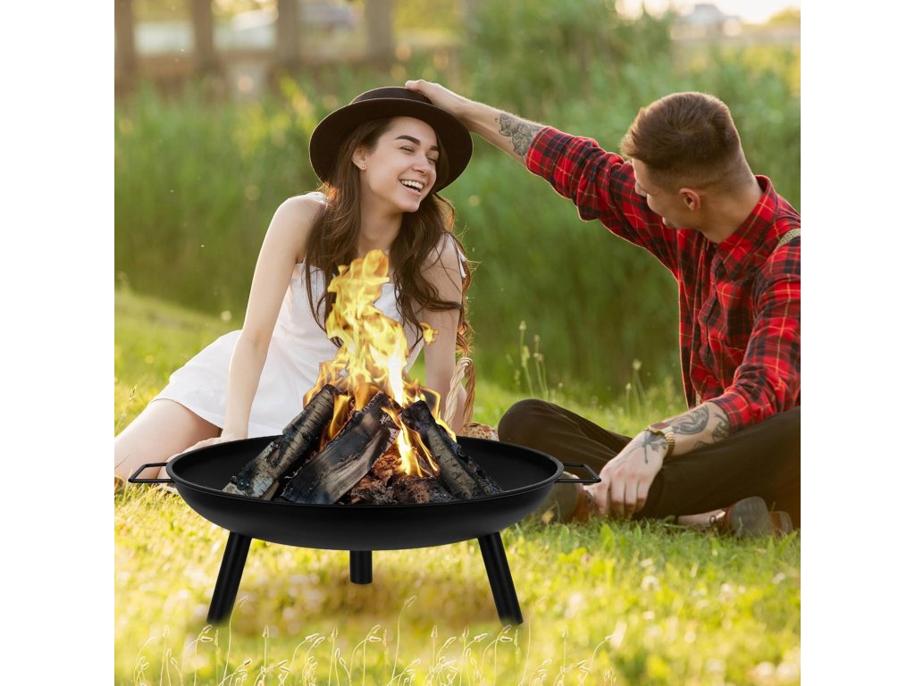 Puteți așeza groapa de foc de grădină pe orice suprafață plană. Picioarele sale sunt chiar echipate cu capace de protecție, astfel încât poate sta în siguranță pe gresie, fără a vă face griji că o veți zgâria.