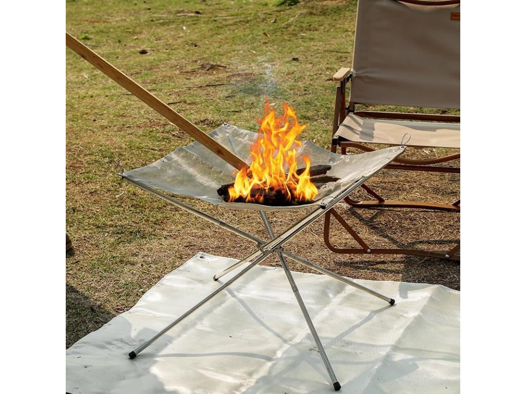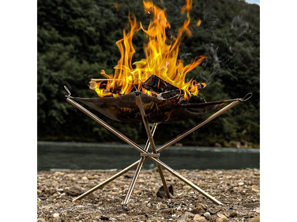 Focarul pliabil portabil de înaltă calitate este așezat pe un suport solid și stabil , care asigură arderea sigură a focului chiar și pe suprafețe neuniforme. Structura picioarelor în formă de cruce reduce semnificativ riscul de răsturnare.