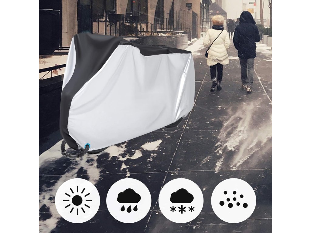 Această husă unică vă va proteja perfect motocicleta de daune, apă, noroi, lumina soarelui, praf și alte tipuri de poluare. Husa poate fi curățată ușor cu o cârpă umedă.