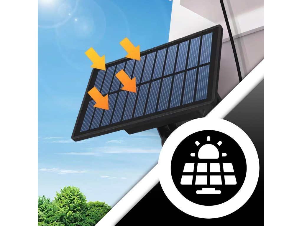 - Alimentare: panou solar + baterie încorporată