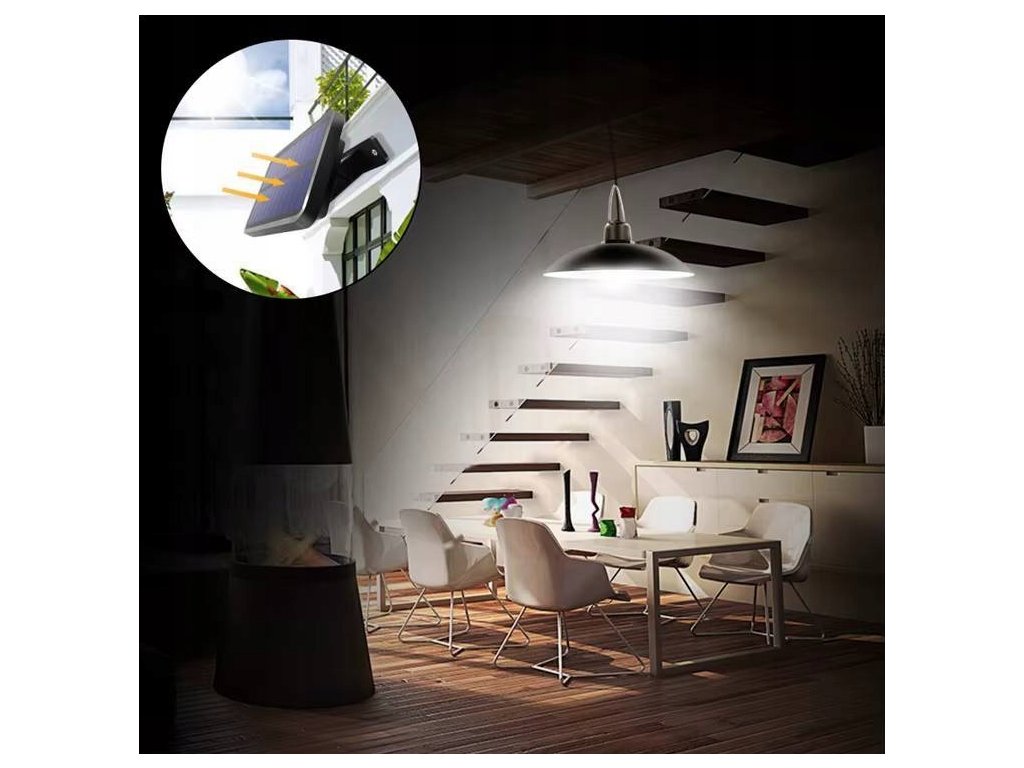 Lampă solară modernă cu pandantiv - lampă LED care funcționează exclusiv pe bază de energie regenerabilă. Panoul solar transformă eficient lumina soarelui în energie electrică, care este stocată într-o baterie puternică. Acest lucru asigură funcționarea pe termen lung a lămpii chiar și în timpul nopții. Economisiți energie electrică și contribuiți în același timp la protejarea mediului.
