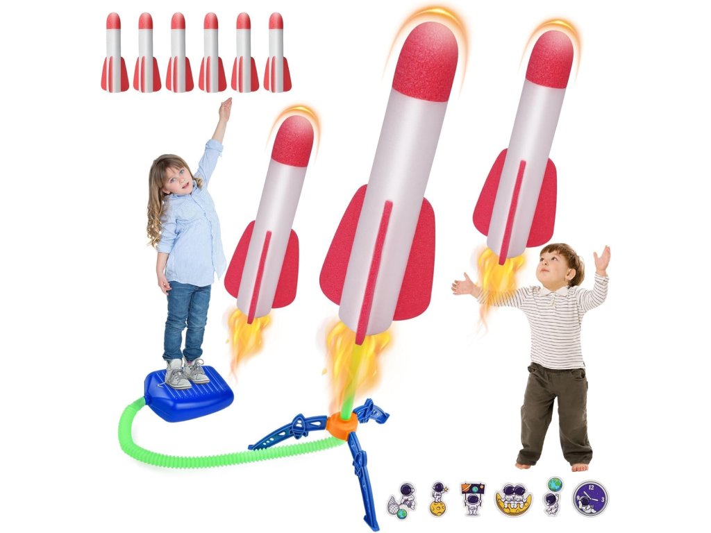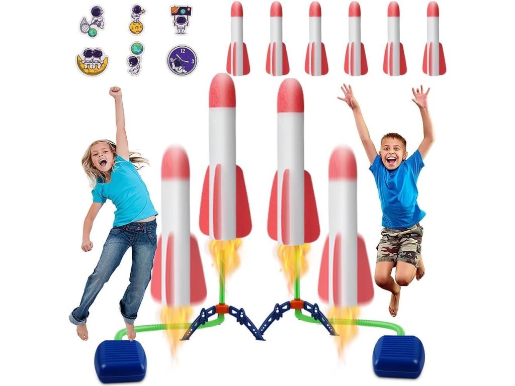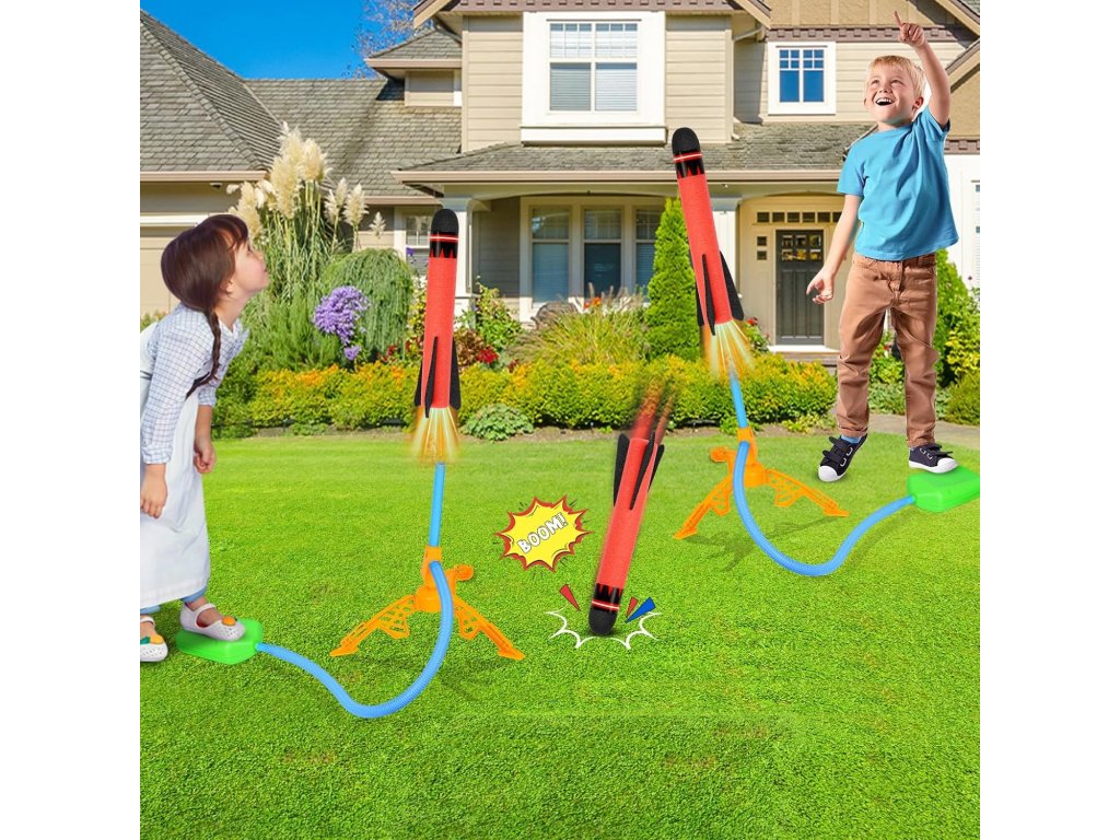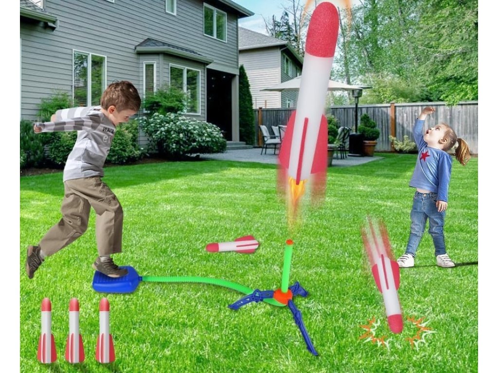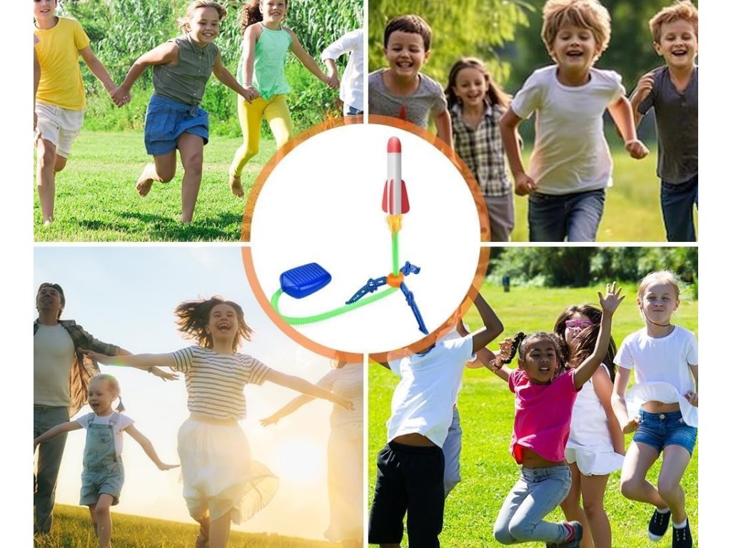 Copiii pot concura între ei pentru a vedea cine poate lansa racheta cel mai sus, experimentând în același timp bucuria activității fizice.