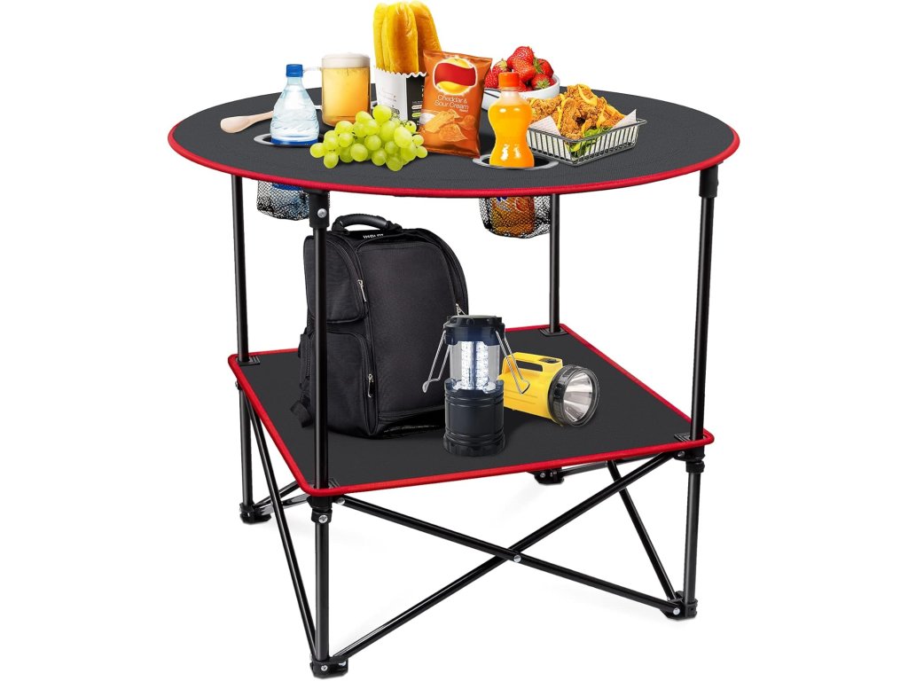 Te întrebi unde să-ți depozitezi toată mâncarea și băuturile la un picnic sau în timp ce stai în grădină? Încearcă această masă de camping pliabilă și descoperă-i caracteristicile practice.