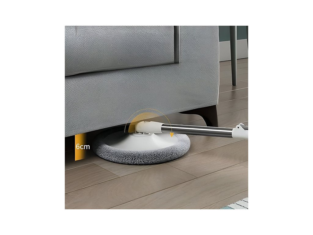 Mopul rotativ unic, cu cap rotativ, se adaptează fără efort fiecărei mișcări datorită rotației complete la 360°. Poți ajunge confortabil sub canapele, dulapuri sau mese fără a te apleca inutil.