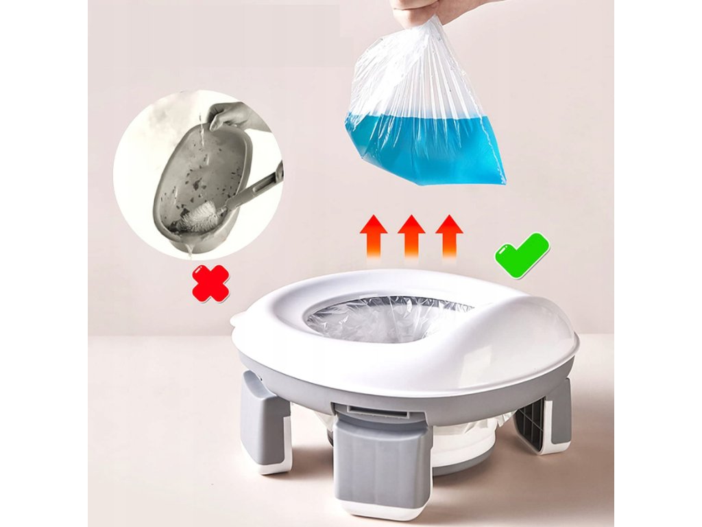 Asamblarea durează doar 5 secunde - trebuie doar să desfaceți picioarele și să așezați un recipient sau o pungă de plastic. Olita este imediat gata pentru o utilizare confortabilă și igienică.
