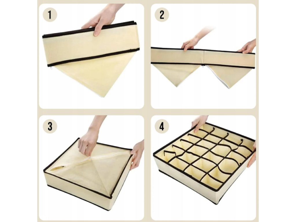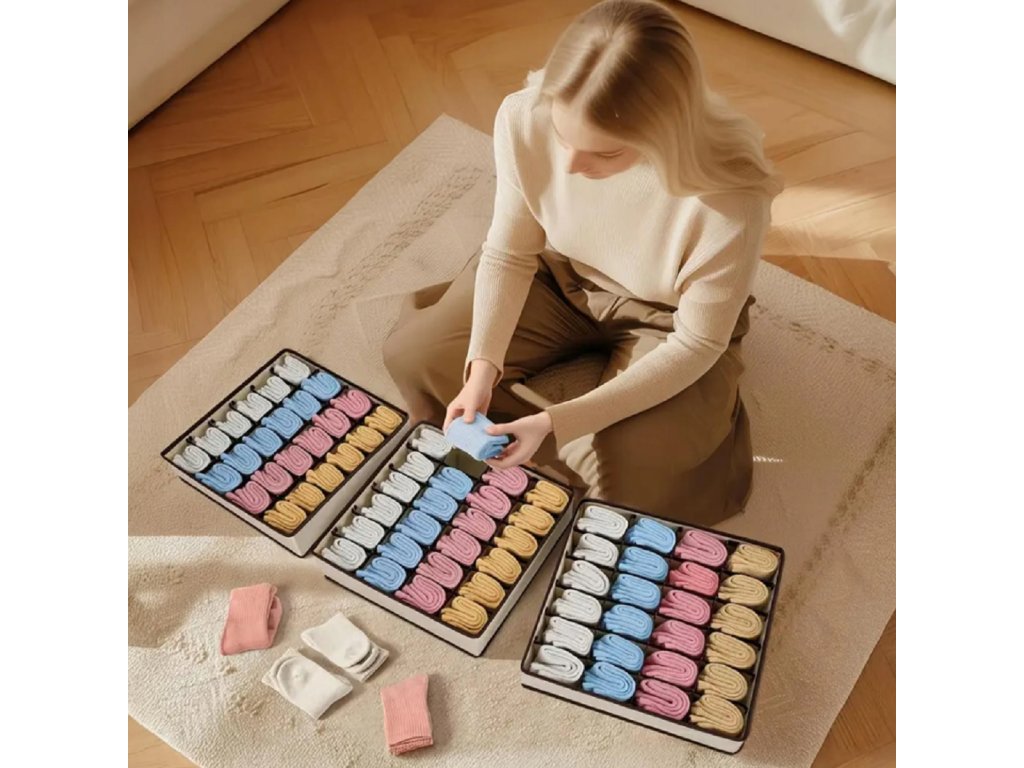 Organizatorul pliabil pentru rufe este conceput pentru a crea o ordine și o claritate maxime în sertarele tale. Datorită compartimentelor separate , poți ști întotdeauna exact unde este depozitată fiecare piesă vestimentară, ceea ce îți poate facilita foarte mult rutina zilnică.