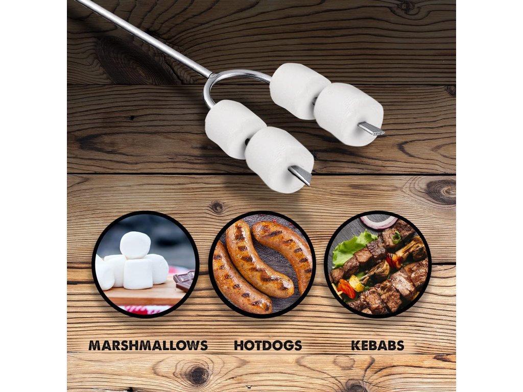 Furculița unică de prăjire poate fi extinsă datorită tijei metalice telescopice. La o lungime maximă de 81 cm, aceasta măsoară distanța ideală față de foc atunci când se prăjește, asigurând în același timp o manevrare sigură a furculiței.