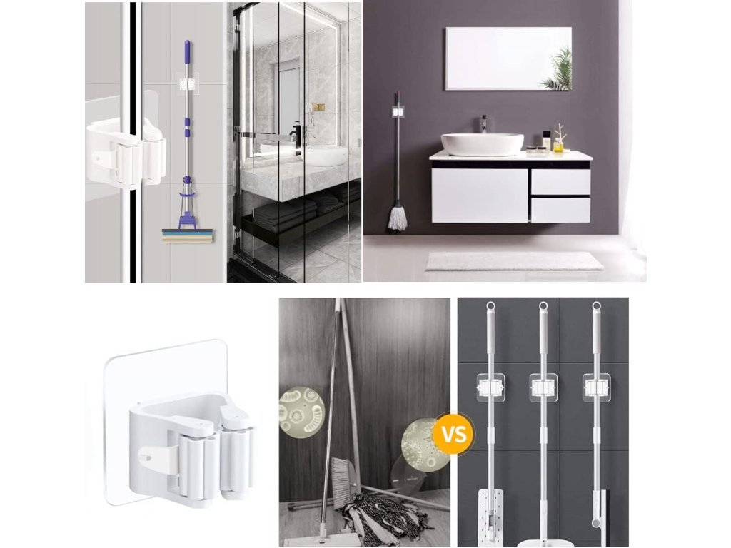 Acest suport uimitor pentru mop ajută la menținerea ordinii în spațiul dumneavoastră și previne sprijinirea mopurilor și măturilor de perete sau de podea. Fiecare lucru își are locul lui, iar produsele de curățare sunt întotdeauna la îndemână. Minimizează dezordinea, crește siguranța și economisește spațiu.