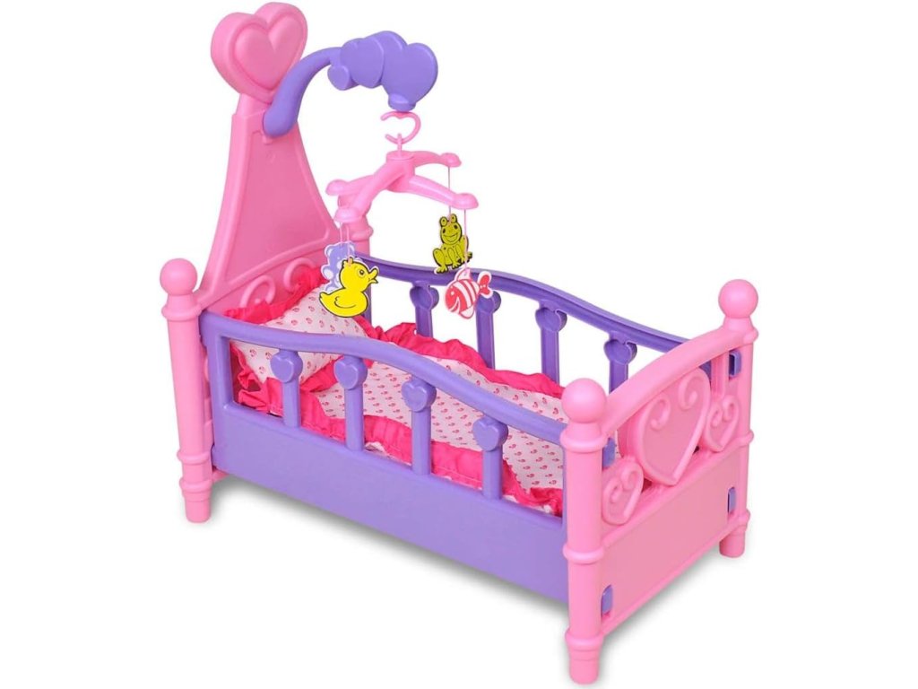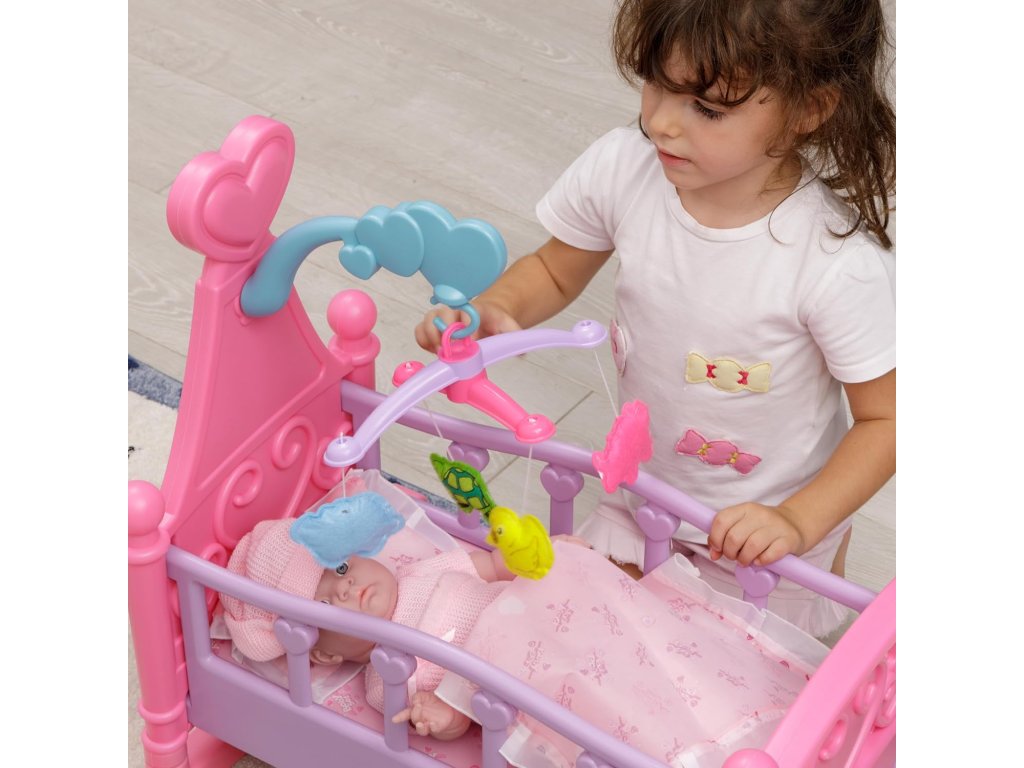 Patul perfect pentru păpuși va impresiona prin designul său adorabil și decorațiunile detaliate. Combinația de tonuri delicate de roz și violet are un efect calmant și se va potrivi cu orice mediu în care se joacă un copil.