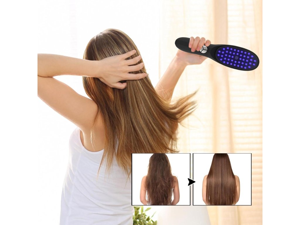 Peria de păr cu LED este echipată cu umflături speciale de masaj, concepute pentru a masa scalpul ușor și delicat. În plus, aveți la dispoziție 3 niveluri de vibrații, astfel încât să puteți alege intensitatea masajului care vi se potrivește cel mai bine.