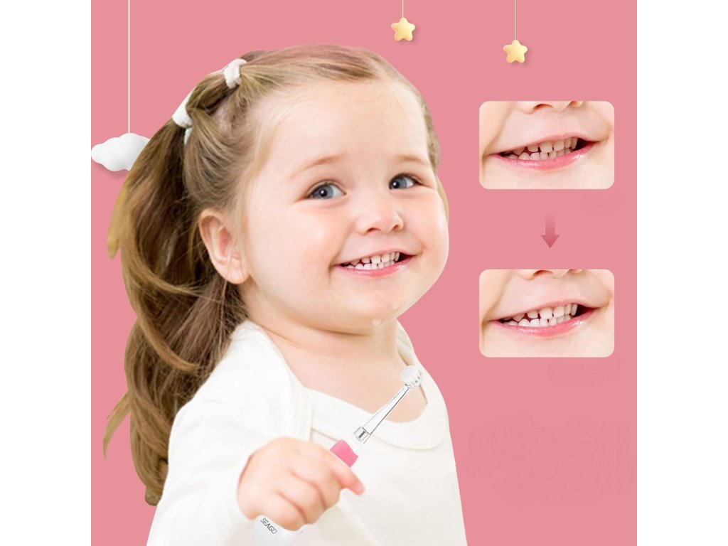 Căutați o modalitate fiabilă de a încuraja obiceiuri de igienă orală sănătoase la copiii dumneavoastră? Periuța de dinți sonică unică pentru copii oferă o curățare delicată, dar temeinică. Este special concepută pentru nevoile dinților și gingiilor sensibile ale copiilor mici.
