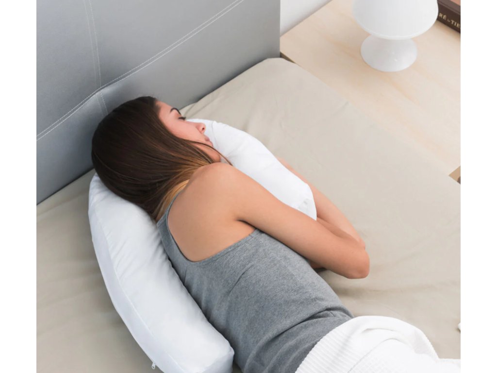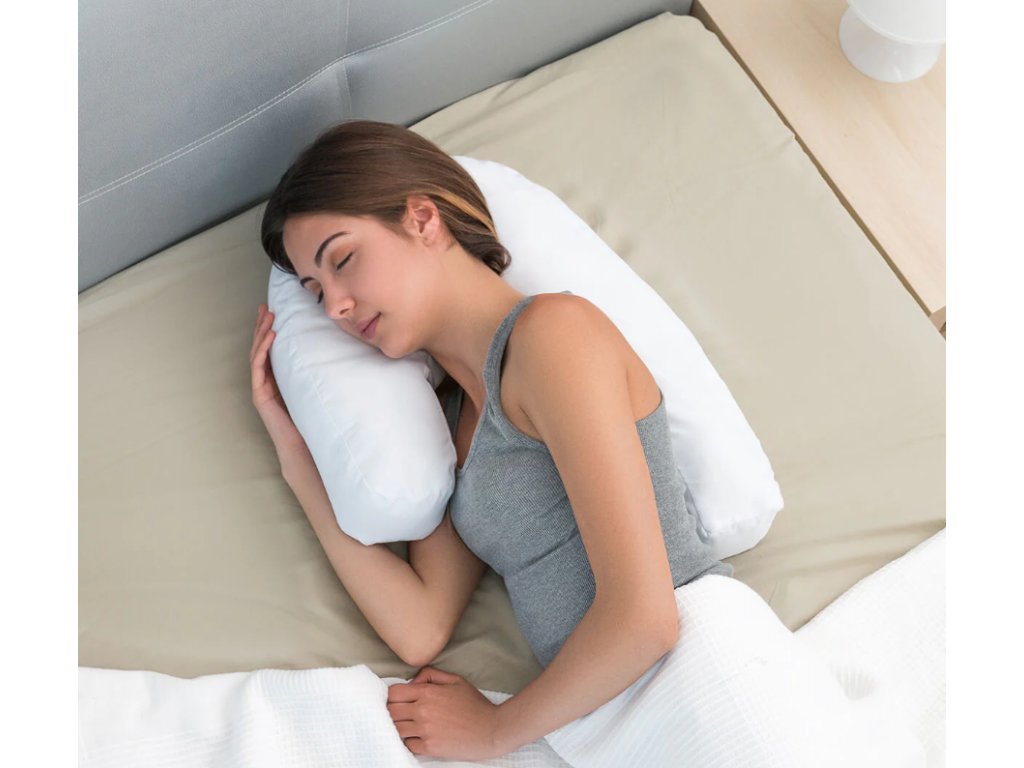 Descoperă o pernă unică în formă de U, care face ca dormitul pe o parte să fie mai confortabil ca niciodată. Are o gaură specială pentru ureche .