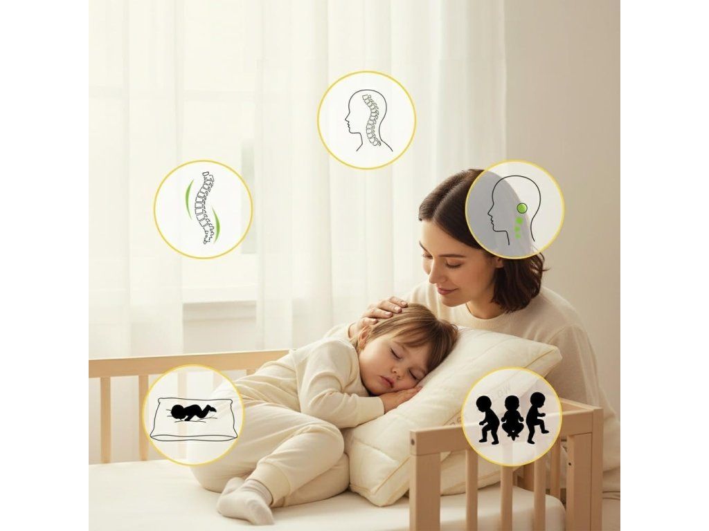 Această pernă pentru copii oferă confort maxim în orice poziție de dormit. Umplutura sa poate asigura o distribuție optimă a presiunii, astfel încât poate oferi un suport suficient pentru o dezvoltare sănătoasă a coloanei vertebrale. De aceea este potrivită și pentru copiii de la 1 an.