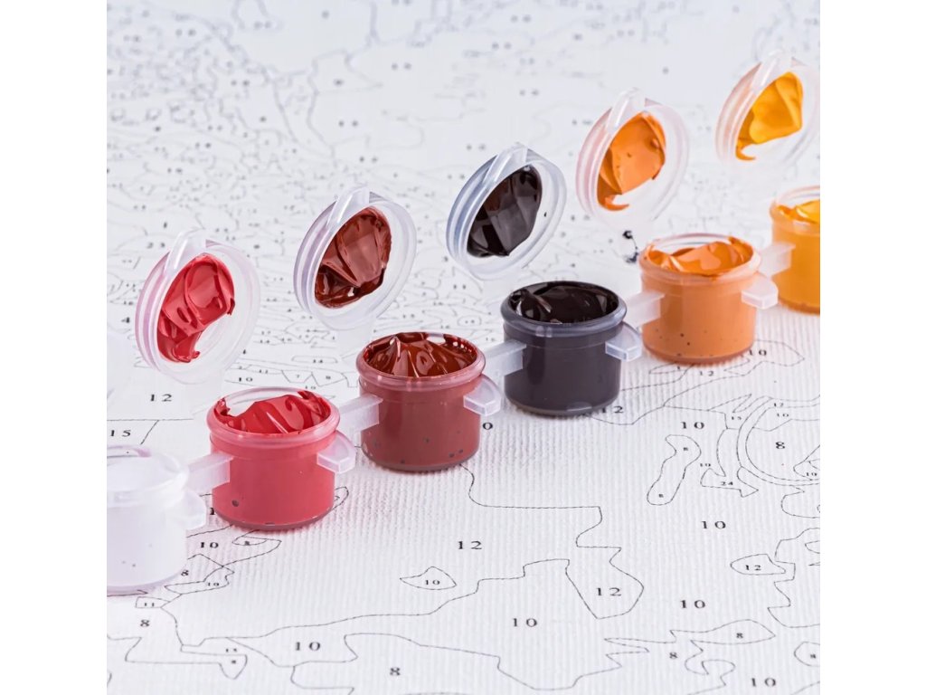 Trusa inspirată de pictat după număr include un set complet de vopsele acrilice de înaltă calitate, special selectate pentru fiecare pictură. Culorile sunt vibrante și durabile, asigurând frumusețea de lungă durată a lucrării tale. Sunt incluse și pensule de diferite grosimi, permițându-ți să pictezi cu precizie și detalii.