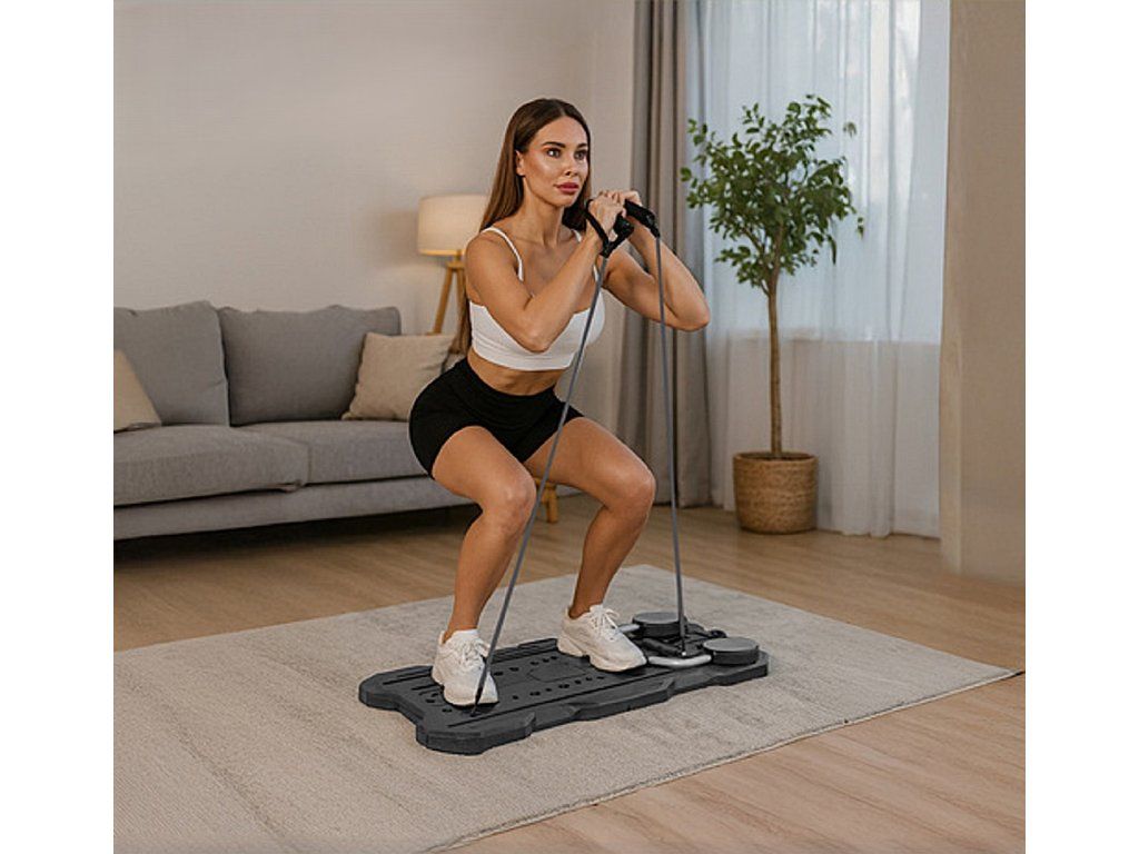 Placa unică de Pilates cu afișaj LCD permite un antrenament complet al mușchilor întregului corp. Exercițiile pe această placă activează mușchii abdominali, ai spatelui, fesieri și ai membrelor superioare și îmbunătățesc coordonarea. Datorită mișcării line și designului ergonomic, antrenamentele sunt sigure, confortabile și eficiente.