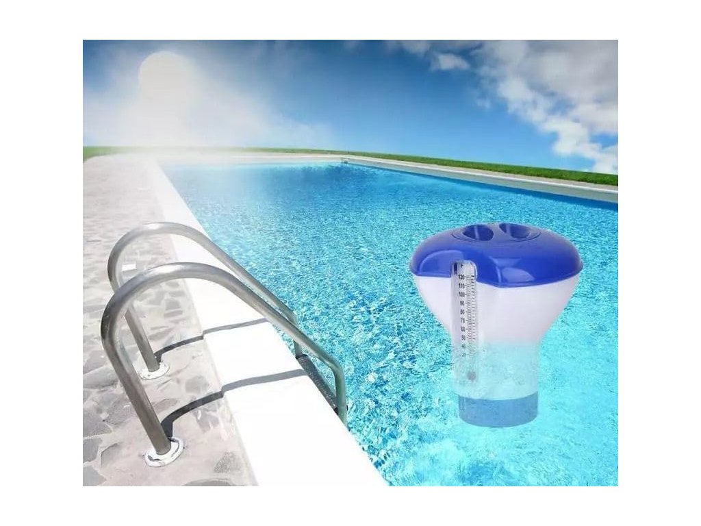 Plutitor unic pentru piscină cu dozator de clor și termometru