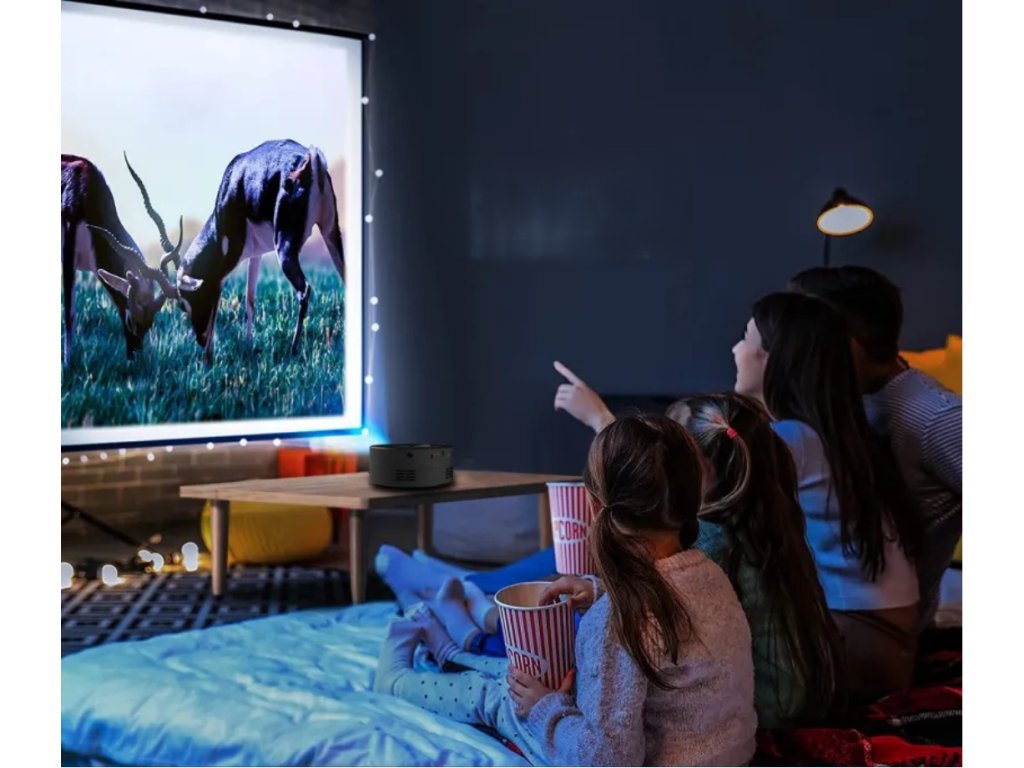 Senzaționalul mini proiector este un ajutor minunat pentru crearea unui confort și divertisment fermecător în casă, atât pentru copii, cât și pentru adulți. Acceptă redarea filmelor la rezoluție completă de până la 1920 x 1080 px, în timp ce rezoluția optică a proiectorului este de 320 x 240 px. Acest mini proiector LED vă permite să configurați un sistem home theater direct în casa dumneavoastră.