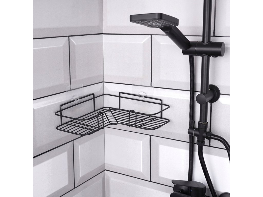 Rafturile de colț unice, montate pe perete, vă permit să vă păstrați articolele de toaletă organizate și accesibile, fără aglomerație. Fiecare raft oferă spațiu amplu pentru șampoane, geluri de duș, săpunuri sau produse de bărbierit. Sunt disponibile opt cârlige suplimentare pentru agățarea prosoapelor, lavete sau perii.