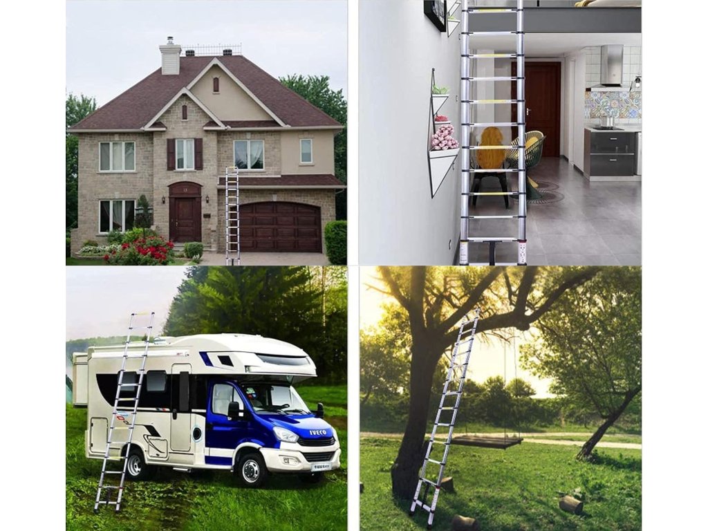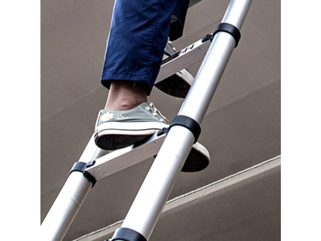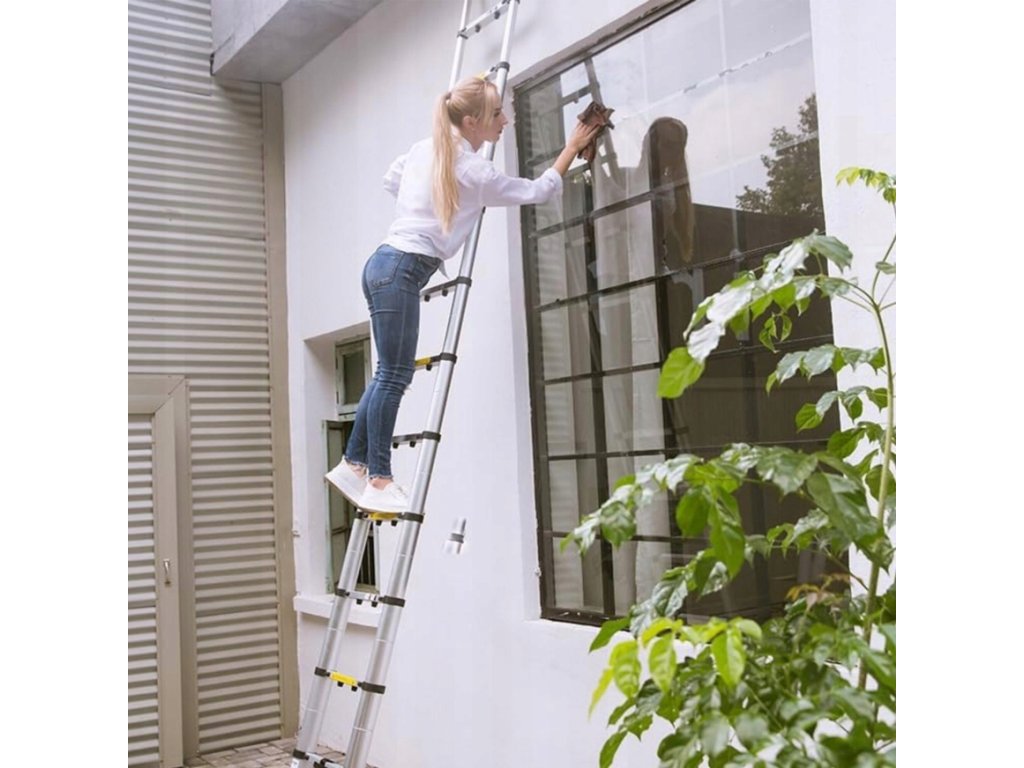 Această scară telescopică practică, cu lungime reglabilă, vă permite să ajustați înălțimea exact în funcție de nevoile dumneavoastră actuale. Cu ajutorul blocării de siguranță, o puteți mișca ușor și în siguranță, până la o înălțime maximă de 2 metri. Flexibilitatea acestei scări este unul dintre cele mai mari avantaje ale sale.
