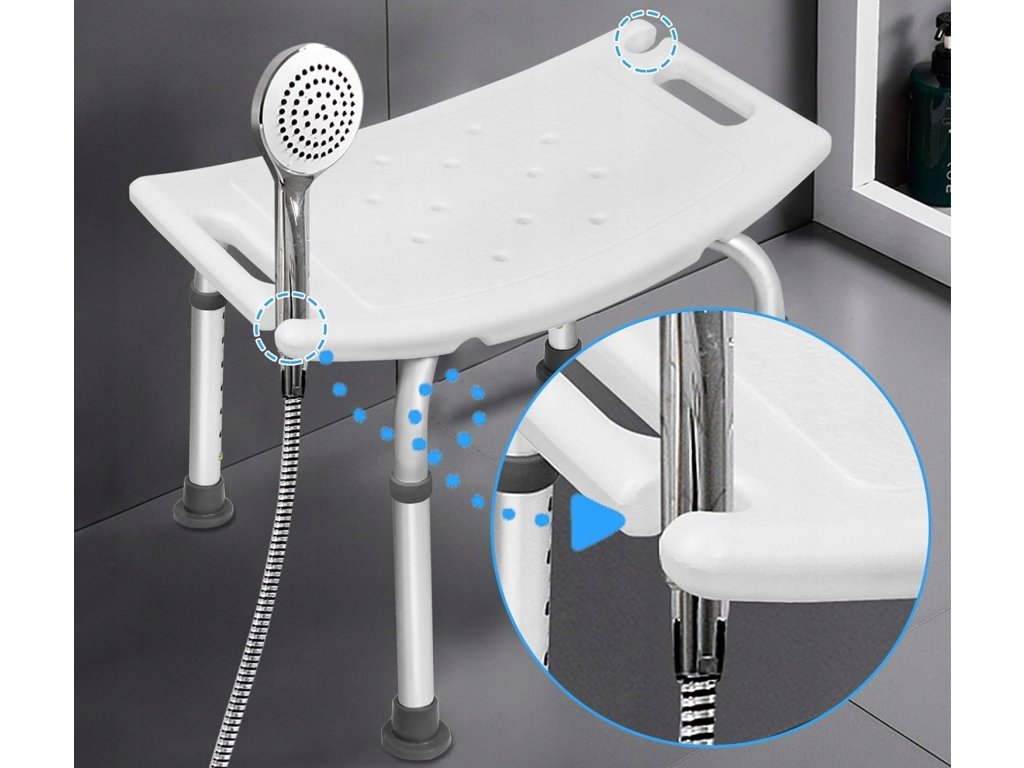 Scaunul de duș are mânere laterale care facilitează șezut și ridicarea în picioare . Există orificii de drenaj în scaun pentru a preveni acumularea apei . Suportul pentru capul de duș crește confortul și este o soluție excelentă pentru persoanele cu mobilitate limitată.