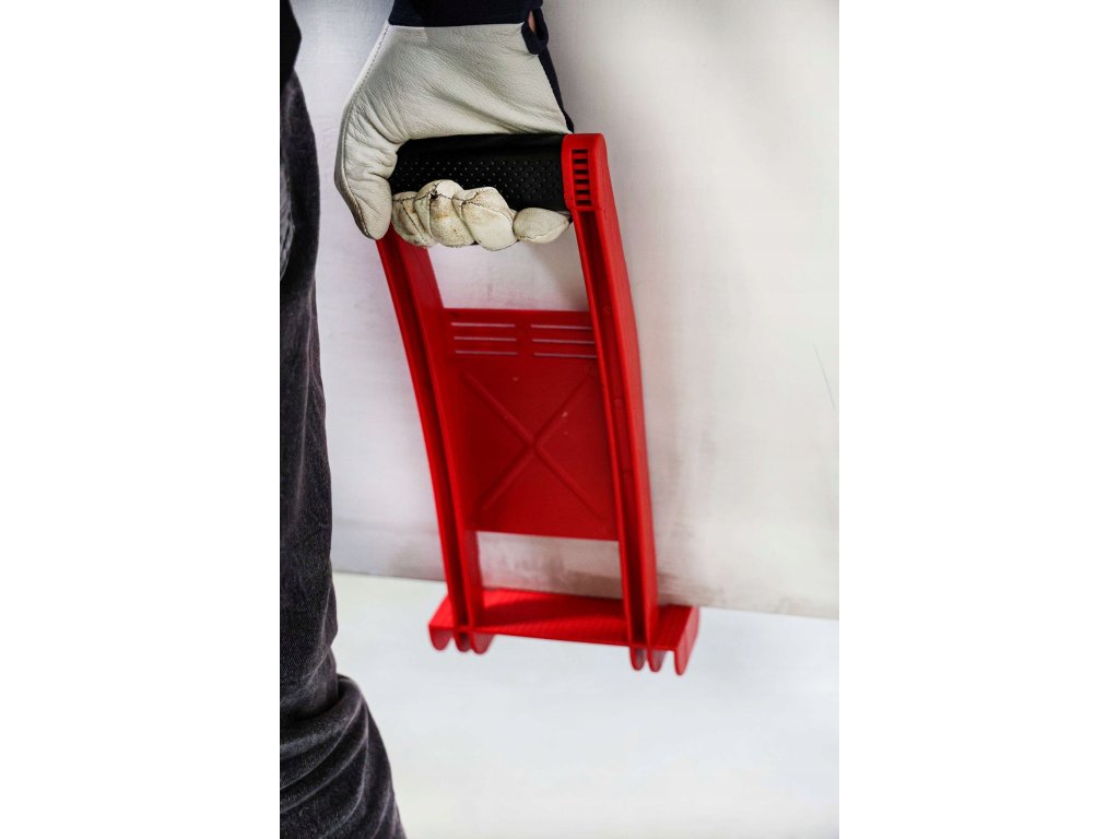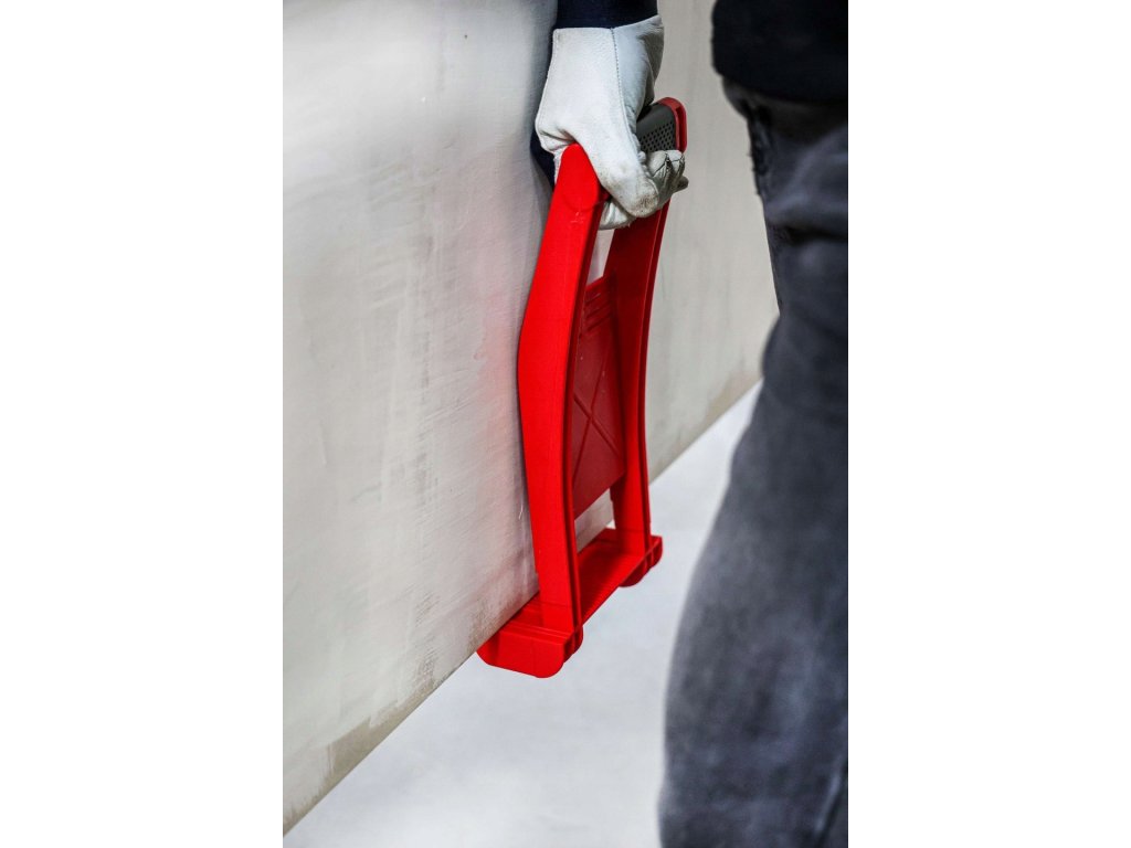 Mânerul SOFT TOUCH asigură o prindere confortabilă în timpul lucrului. Acest lucru vă oferă o prindere ușoară și confort atunci când transportați plăcile, reducând riscul de supraîncărcare și accidentare. Indiferent dacă sunteți un profesionist experimentat sau un începător, acest suport va face din transportul plăcilor o plăcere pură.