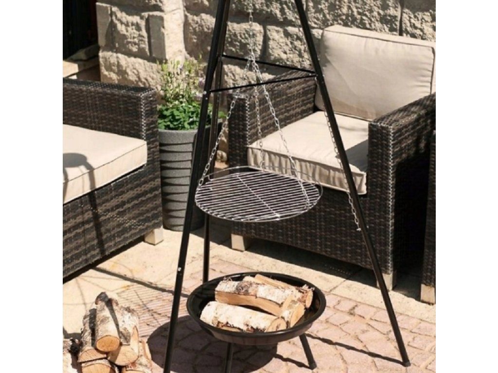 Trepied deasupra gropii de foc cu grătar - grătar suspendat