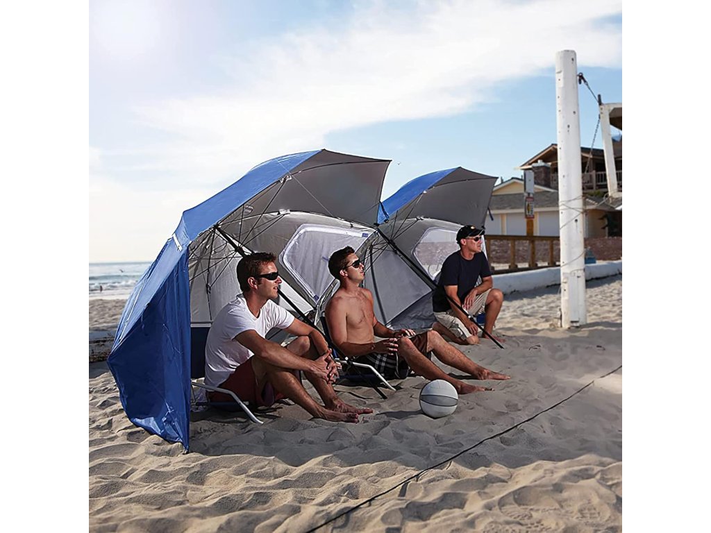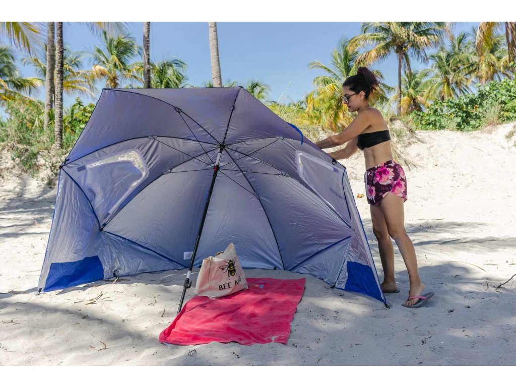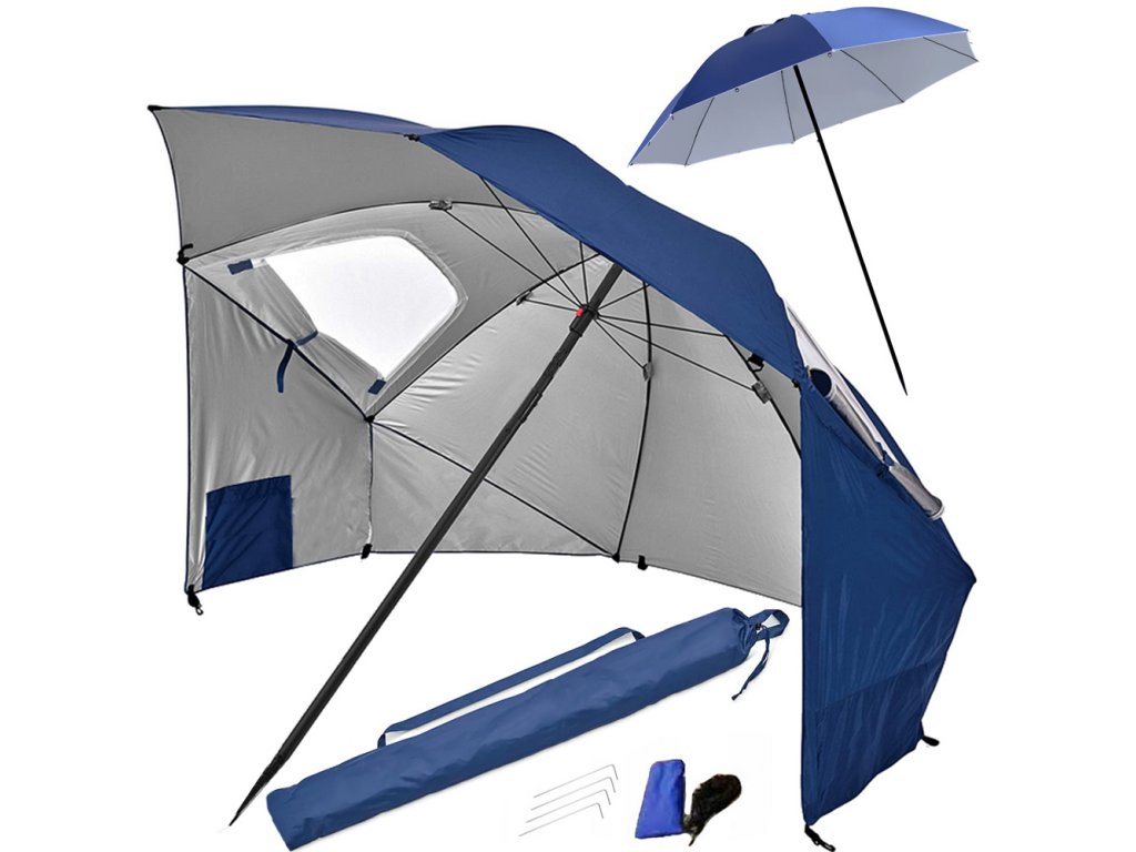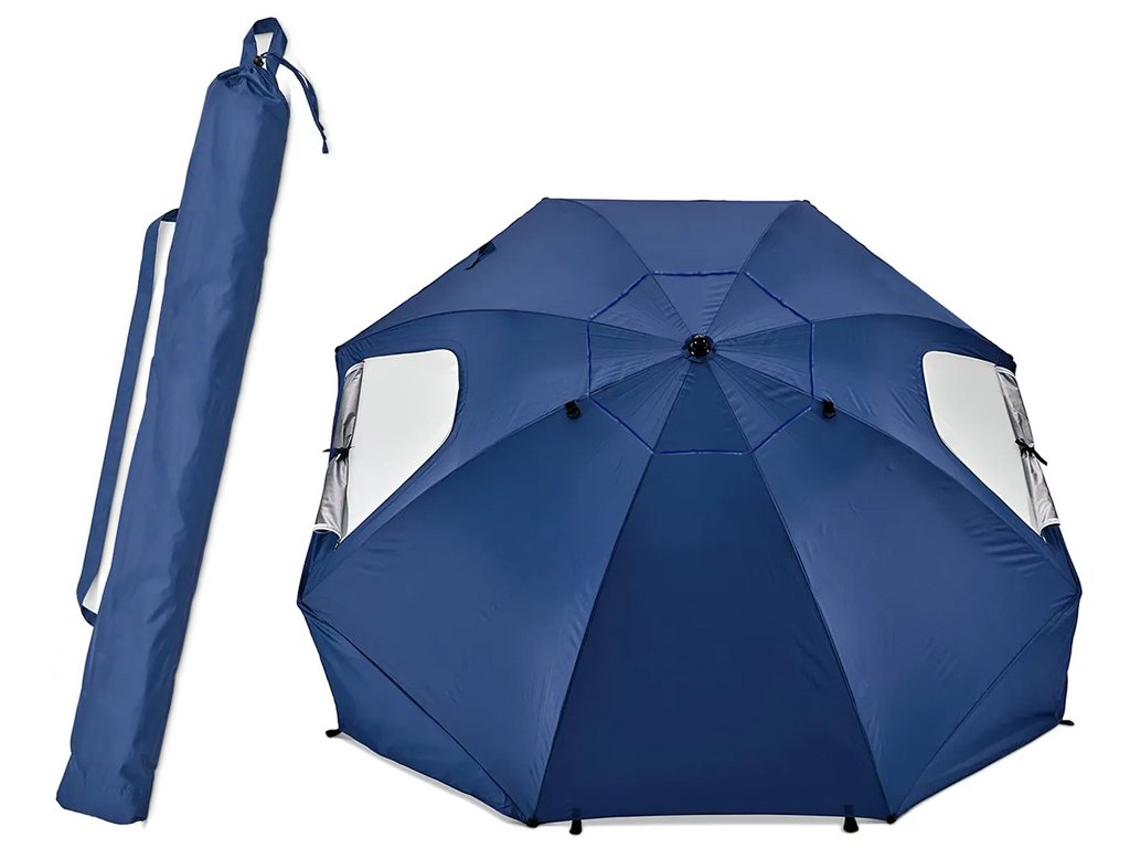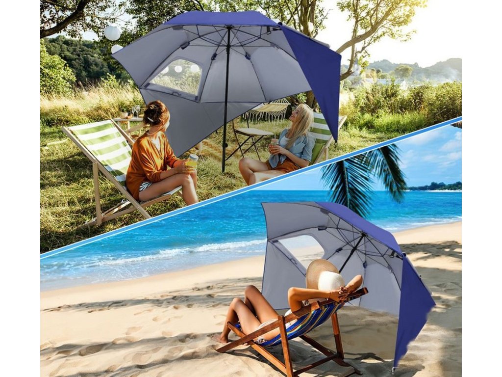 Ia o umbrelă de plajă mare, multifuncțională, 2 în 1. Prin atașarea panourilor laterale la exterior, poți transforma adăpostul într- o umbrelă de soare clasică. De asemenea, poți regla înălțimea. Acest lucru va extinde semnificativ posibilitățile sale de utilizare.