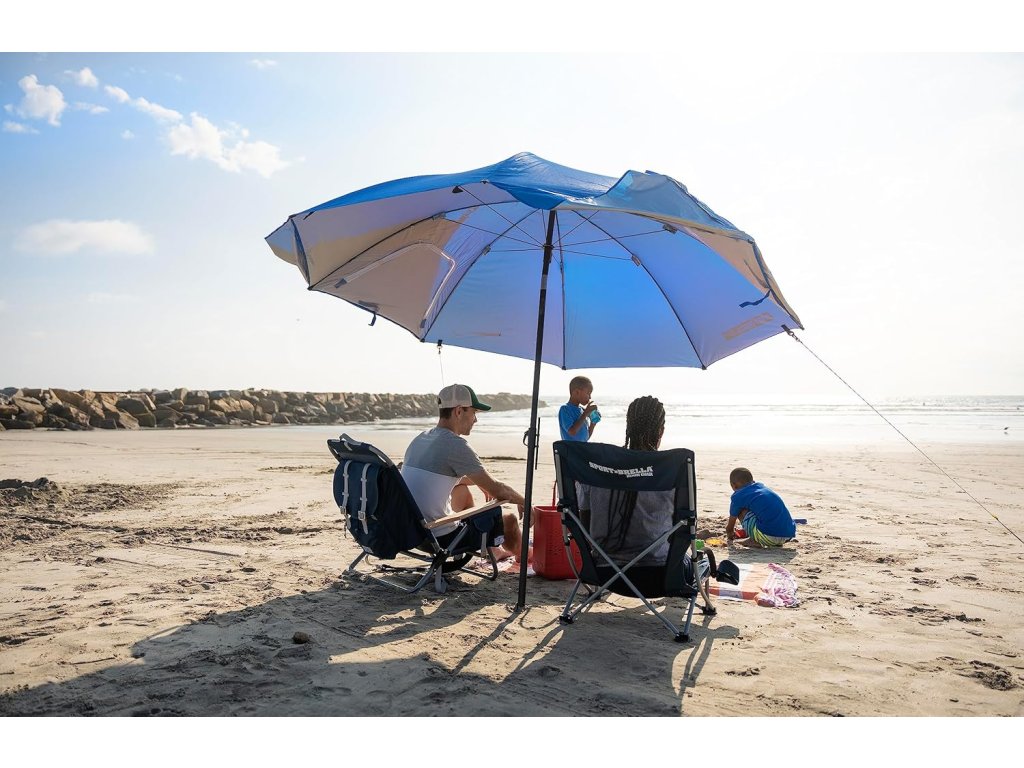 Poți lua umbrela de plajă multifuncțională cu tine oriunde. Pur și simplu împacheteaz-o într -o geantă practică cu curea de umăr. Când este pliată, nu ocupă mult spațiu, lucru pe care îl vei aprecia chiar și atunci când îl depozitezi în afara sezonului.
